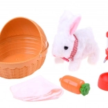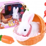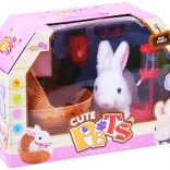 En sød hvid kanin med lyserøde ører vil glæde ethvert barn. Når batterierne indsættes, bevæger kaninen sig fremad, vrikker komisk med snuden og giver kaninlyde. Sættet indeholder en kurv med tæppe, en gulerod og en sutteflaske/fodringsflaske til realistisk pasning af kæledyret.
