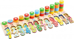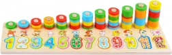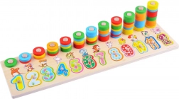 Ideel til førskolebørn: udvikler finmotorik, koncentration og visuel skelnen. Kvalitetstræ uden skarpe kanter sikrer lang holdbarhed og sikker leg. Takket være det alsidige design fungerer det også som et første lille abakus.