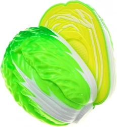Grøntsagerne holdes sammen med velcro – børn kan igen og igen dele dem med den sikre plastkniv.
