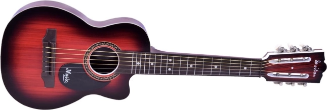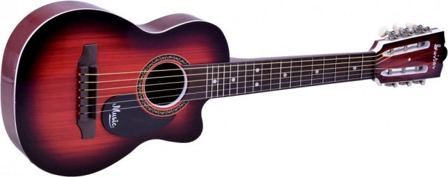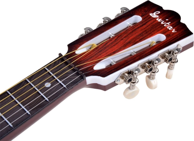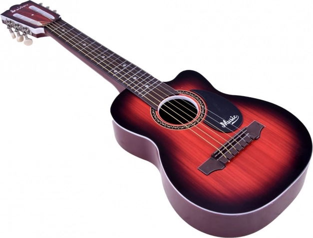 Denne plast-børneguitar ligner et rigtigt instrument, men er let og robust – perfekt til begyndere. Med 6 metalstrenge og mulighed for grundlæggende justering på hovedet kan børn nemt lære deres første akkorder og rytmer.