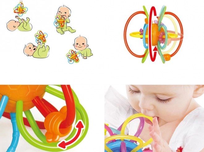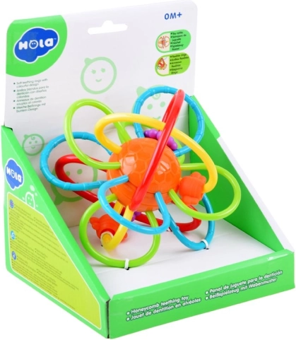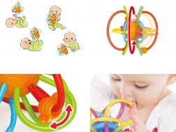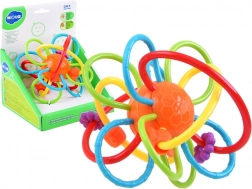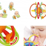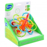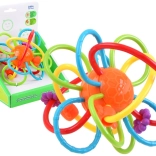 De sammenflettede ringe af fleksibel plast ligger godt i de små hænder, træner grebet og hånd-øje-koordinationen allerede fra de første måneder.