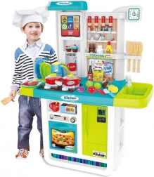 To kogeplader med lys og lyd, ovn og kaffemaskine skaber en autentisk køkkenstemning. Børn kan “lave mad”, bage og servere som rigtige kokke.