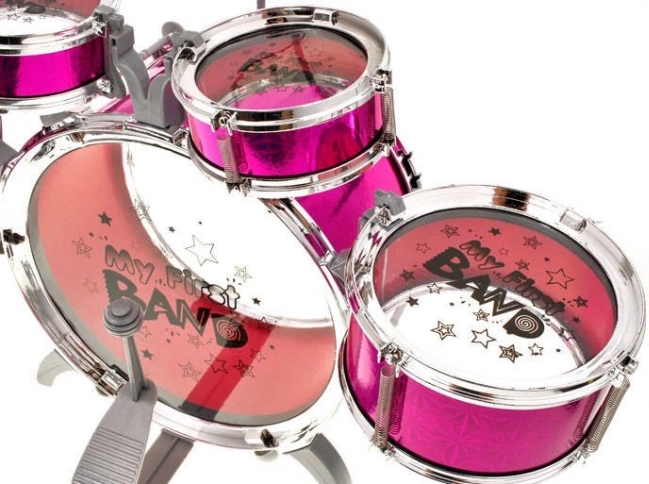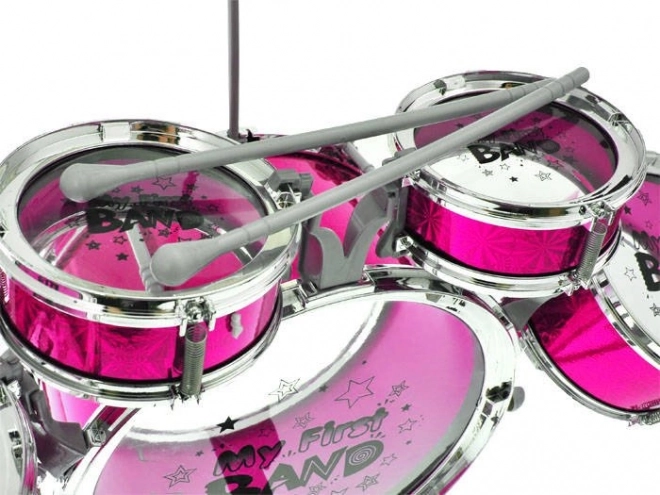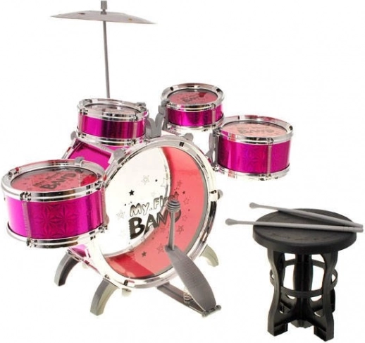 Trommesæt til børn, 5 dele med skammel – Rosa