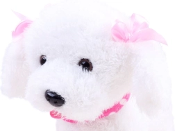Takket være det bløde og silkebløde materiale er hunden perfekt at kramme. Det farverige halsbånd og sløjferne giver legetøjet et nuttet udtryk, som børn hurtigt forelsker sig i. Ideel til leg derhjemme på plane overflader.