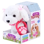 Tilkobl snoren og aktiver gang og gøen med knappen. Børn kan gå tur med hunden på plane overflader som med et rigtigt kæledyr.