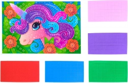 Dette kreative sæt er ideelt til små skabere, der elsker at lave noget med deres egne hænder. Børnene følger farveskabeloner og sætter nemt selvklæbende skumkvadrater på en kartonplade og samler trin for trin et festligt billede. Det færdige værk kan hænges på væggen eller bruges som en original gave til forældre eller bedsteforældre.
