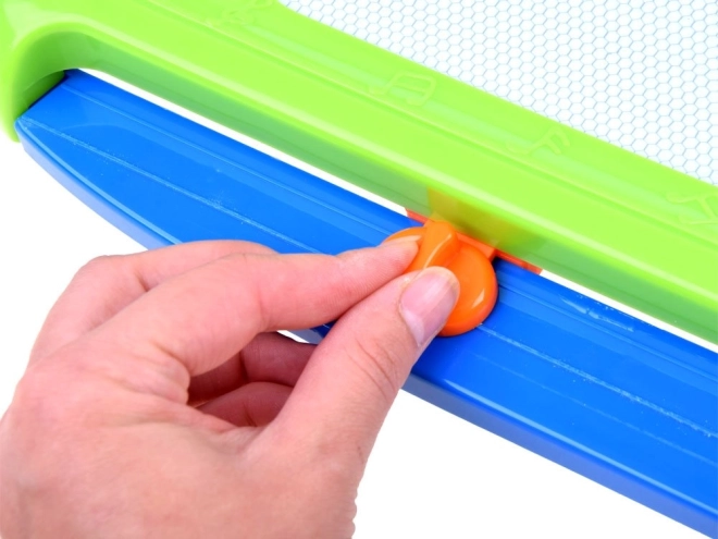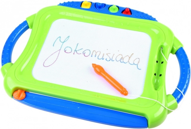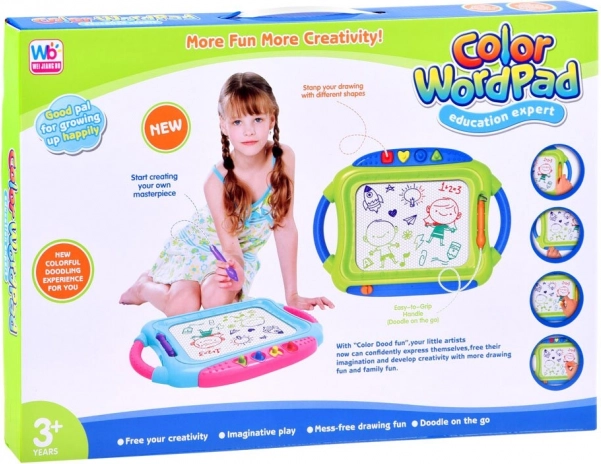 Denne farverige magnetiske tavle lader børn tegne, skrive og stemple former uden behov for papir og farver. Det firefarvede felt varierer efter, hvor man tegner, hvilket gør billederne levende og engagerende. Alt viskes nemt ud med den glidende visker – så kan der skabes på ny.