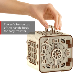 3D puslespil boksen fra Wooden City er en ideel gave til elskere af gåder og smukt design. Denne funktionelle model efterligner mekanismen i en bankboks med en trecifret kombination, som kan ændres når som helst. Boksen har også en hemmelig funktion, der hjælper dig, hvis du glemmer koden. Udtrykket forstærkes af et håndtag for nem transport og hyldeplads indeni.