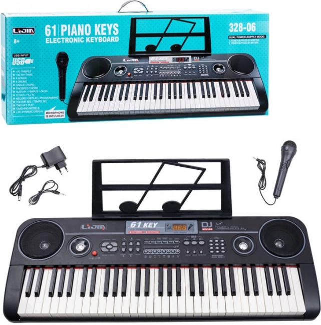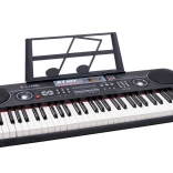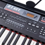Multifunktionelt keyboard med 61 tangenter, 100 lyde, 100 rytmer og 8 trommepads. Tilbyder USB-indgang til MP3-backing tracks, optagelse/afspilning, LED-display, stereohøjttalere og tilslutning af mikrofon. Ideelt til begyndere og hjemmemusik.