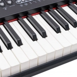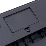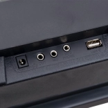To indbyggede stereohøjttalere leverer fyldig lyd uden behov for eksternt anlæg. Der er mikrofonindgang (mini-jack), linjeindgange/-udgange til telefon, afspiller eller hovedtelefoner og et nodestativ. Strømforsyning via adapter (inkluderet) eller batterier, så du kan spille hvor som helst.
