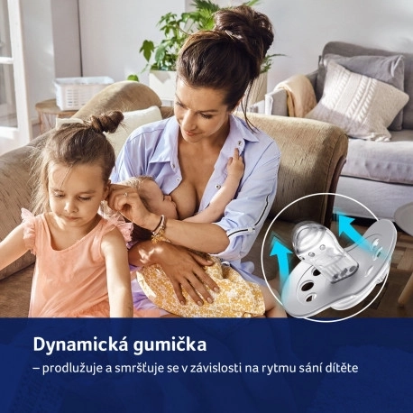 Dynamisk sutteklud Fremstillet af et uhomogent silikonelag, som gør det muligt for sutten at trække sig sammen og udvide sig, når barnet suger; den symmetriske form ligner moderens brystvorte. Nr. 1 blandt sutter Bekræftet i en forbrugerundersøgelse udført blandt 700 mødre til børn i alderen 0-24 måneder, GfK, november 2018. Silikonesut Fremstillet af holdbar, blød silikone af høj kvalitet, uden smag og lugt. Formet skjold Dets form gør det let for barnet at trække vejret gennem næsen; der anvendes sikre materialer uden bisfenol A. Huller i skjoldet Sikrer fri luftcirkulation og forhindrer irritation af barnets følsomme hud. Praktisk håndtag Sættet indeholder: 2 stk dynamisk sut fra LOVI 2 stk plastetui til sut 1 stk hygiejnisk kapsel til opbevaring af sutten Brugsanvisning: Før første brug steriliser sutten af hygiejniske grunde i kogende vand i ca. 5 minutter. Når den er afkølet, tryk overskydende vand ud af sutten. Før hver brug vask sutten i varmt vand. Brug ikke kemiske desinfektionsmidler! Høje koncentrationer af disse midler kan beskadige sutlens plastdele. Dyp aldrig sutten i søde substanser eller medicin – det udsætter barnet for risiko for emaljeskader. Brug sutten i maksimalt 1-2 måneder, udskift den derefter af hygiejniske og sikkerhedsmæssige grunde. Hvis sutten glider ind i barnets mund, SÅ BEVAR ROEN – sutten er konstrueret, så barnet ikke kan sluge den, og du kan sikkert fjerne den i sådanne tilfælde. Fjern sutten så forsigtigt som muligt. Opbevar sutten i et rent, tørt og lukket etui. Vi anbefaler ikke at bruge sutten til et barn over 3 år. Advarsel! Vigtigt for dit barns sundhed og sikkerhed! Kontroller sutten før hver gang den gives til barnet. Vær særlig opmærksom på sutten, når barnets første tænder bryder frem. Test suttegummiets kvalitet ved grundigt at trække i alle retninger. Ved de første tegn på skader skal sutten straks kasseres og ikke bruges igen. Brug kun sutteholdere, der opfylder kravene i standard EN12586. Fastgør aldrig sutten med snore, snørrebånd eller bånd fra tøj. Barnet kan blive kvalt. Lad ikke sutten ligge i direkte sollys, nær varmekilder eller i desinfektionsmidler længere end anbefalet – det kan svække suttegummiet. Opbevar det afmonterede låg uden for barnets rækkevidde – for at forebygge mulig kvælning. Silikonesutten opfylder kravene i: Europa-Parlamentets og Rådets direktiv 2001/95/EF om generel produktsikkerhed, EN 1400 - 1 Plejeprodukter til børn – Sutter til spædbørn og småbørn – Del 1: Generelle sikkerhedskrav og produktinformation, EN 1400 – 2 Plejeprodukter til børn – Sutter til spædbørn og småbørn – Del 2: Mekaniske krav og prøvninger, EN 1400 - 3 Plejeprodukter til børn – Sutter til spædbørn og småbørn – Del 3: Kemiske krav og prøvninger.