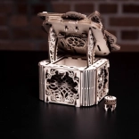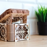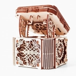 Denne træmekaniske boks er ikke kun et smukt dekorativt element, men også en udfordrende gåde. Du vil elske dens unikke design og de tilsyneladende komplekse mekanismer, som du skal knække for at åbne den.