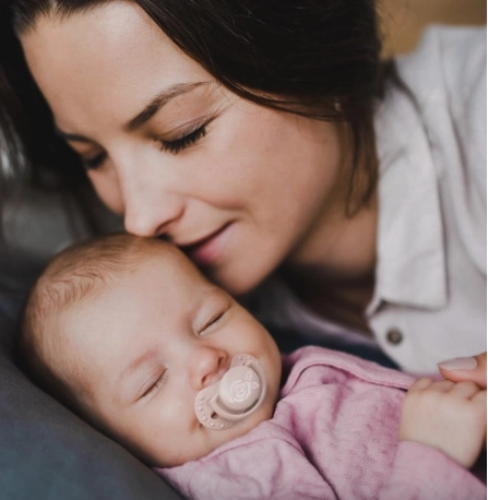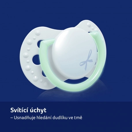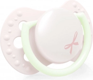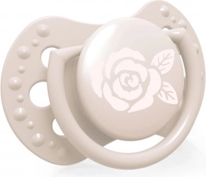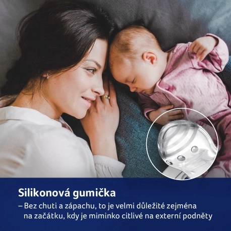 Fremstillet af lag af silikone for fleksibilitet i takt med barnets sutterytme. Den symmetriske form minder om moderens brystvorte og gør det nemt at placere i munden.