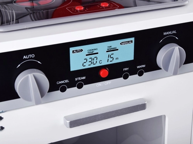 Køkkenet er udstyret med lys- og lydeffekter, der giver børnene en realistisk fornemmelse af madlavning.