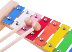 Xylofon med regnbuefarvede metaltangenter giver børn mulighed for at udforske melodier og udvikle musikalsk hørelse. Den er ideel til at lære grundlæggende musikprincipper.