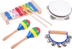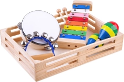 Træsæt musikalsk er det ideelle valg for små begyndende musikere. Det udmærker sig ved sine levende farver, der straks fanger børnenes opmærksomhed, og hjælper med at udvikle hørelsen og rytmen.