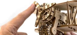 Byggesættet er lavet af kvalitets birkefinér og samles uden brug af lim eller værktøj. Dimensionerne på den samlede model er cirka 16,1 x 14 x 8,8 cm. Det vil blive en fantastisk gave til flyentusiaster og garanterer timers sjov og indsigt i mekaniske gear og tandhjul.