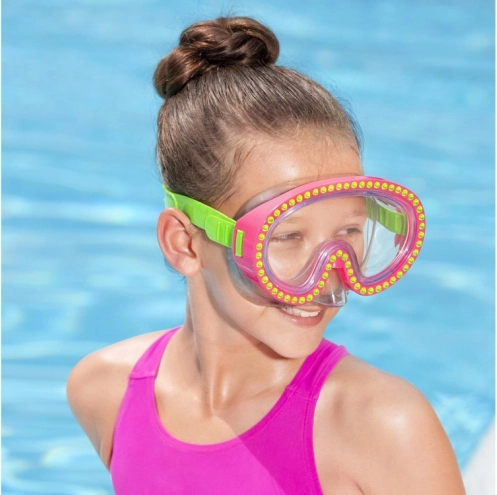 Bestway svømmemaske er ideel til børn fra syv år, designet med fokus på komfort og stil. Takket være justerbarheden er den let at tilpasse og sikrer en perfekt pasform på barnets hoved.