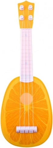 Denne plastikukulele er designet til de yngste musikelskere. Den lette konstruktion ligger godt i små hænder, og den markante frugtgrafik motiverer til hyppigere spil. Med fire nylonstrenge og enkel stemming lærer børn nemt grundlæggende rytme og melodi.