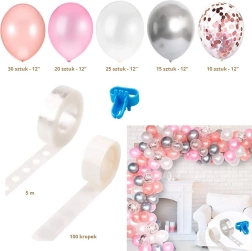 Sættet med balloner indeholder en båndstrimmel med huller til at lave guirlanden.