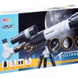 Børneteleskopet er en fremragende start på astronomiens verden – det stimulerer nysgerrigheden og giver komfortabel observation af Månen, stjernerne samt objekter på Jorden. Refraktorsystemet med skråt spejl forbedrer kontrasten, reducerer optiske fejl og leverer et stabilt, retvendt billede. Takket være den kompakte længde og lette konstruktion kan det nemt placeres på et bord og gøres klar til observation på få øjeblikke.