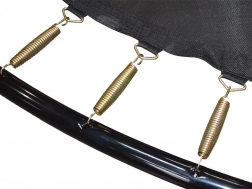 Hoppefladen JUMPING MAT i PP med 8 sømme og stærke oxiderede fjedre sikrer fremragende afsæt, elasticitet og lang levetid.