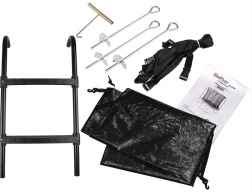 Stige, anker med remme, vandtæt regncover og værktøj til opspænding af fjedre – alt til nem montering og sikker brug.