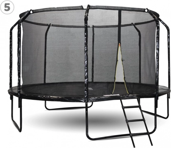 Springdugen af kvalitets-polypropylen er flersyet (op til 8 sømme) og suppleret med oxiderede fjedre dækket af en beskyttende kant. Stabiliteten sikres af U-ben med skruer monteret indefra i konstruktionen, så ydersiden er glat og sikker. I pakken finder du også en stige, pløkker med spændestropper og et vandafvisende overtræk for nem brug og vedligeholdelse.