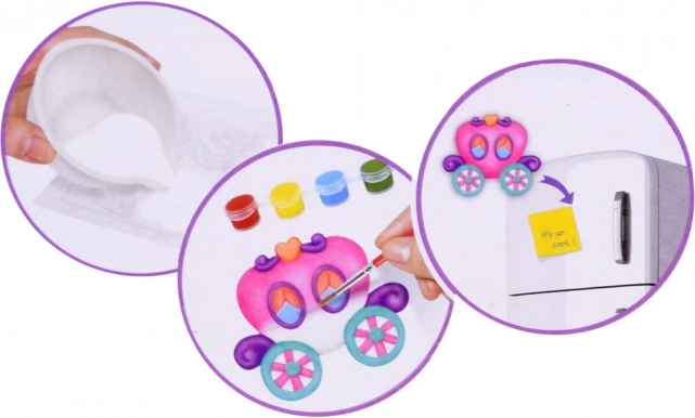 Oplev skaberglæden med et gør-det-selv-sæt til fremstilling af gipsmagneter med prinsessemotiver. Børnene blander selv gipsen, hælder den i formene og maler dem, når de er hærdet, med de medfølgende farver. De færdige magneter bliver en smuk dekoration eller en original gave.