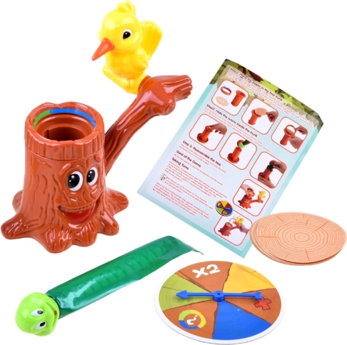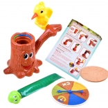 Spillet Doktor Spætte – sygt træ er et ideelt valg til fælles aftener og børnefødselsdage. Spillerne skiftes til at dreje rouletten, indstiller ringen med papiret på den udtrukne farve og “banker” med spætten på papiret. Målet er at lave flest mulige træffere og som den første bryde papiret, så den fjederbelastede orm springer ud af træet.