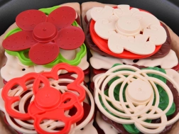 Peperoni, svampe, peberfrugt, tomat, salat og andre tilbehør giver uendelige kombinationer og støtter kreativ leg som pizzeria.