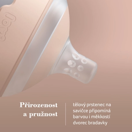- Naturlighed og elasticitet: Den blide ring på sutten minder om farven og blødheden på moderens bryster.