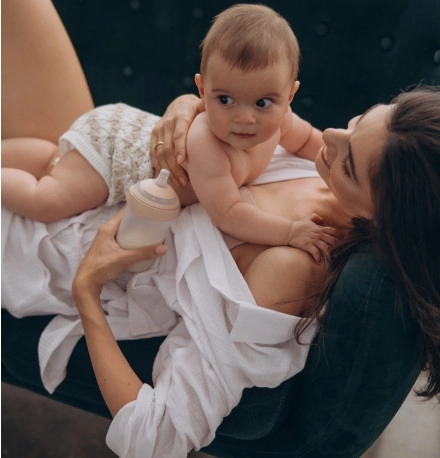 Innovativ flaske til naturlig og komfortabel madning af din babyMammafeel-flasken er designet til at efterligne moderbrystet mest muligt med hensyn til farve, form og sugedynamik, hvilket sikrer komfort og nærhed under fodringen. Denne fremragende nyhed gør det muligt at kombinere amning med flaskefodring uden risiko for at forstyrre barnets sutterefleks.