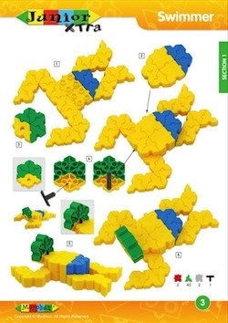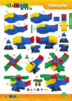 Byggeri med Morphun Junior Xtra byggesæt bliver endnu sjovere, når du har en omfattende vejledning ved hånden. Hvorfor har du brug for den? Denne unikke brochure har 36 sider i A4-format og er fuld af værdifulde råd om, hvordan man kan kombinere klodser og skabe fantastiske konstruktioner, køretøjer, dyr og alt, hvad hjertet begærer! Intet står i vejen for, at du tilpasser de viste objekter efter dine egne ideer. Det anbefales faktisk! Sådanne tilpasninger vækker de kreative og fantasifulde områder i dit barns hjerne. Under leg er risikoen for at beskadige hæftets sider lav takket være papirets tykkelse og produktets høje kvalitet.
