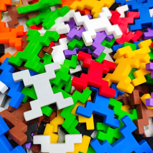 Stort sæt til både små og store byggere. En afbalanceret farveblanding understøtter kreativitet, sortering og mønsterdannelse, ideelt til både hjemmet og institutioner.