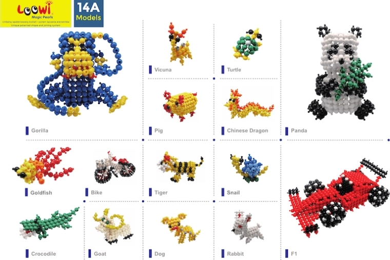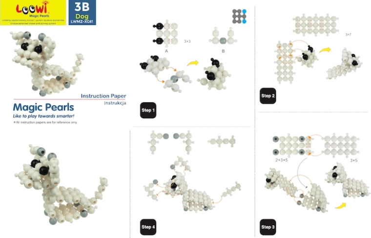 En interessant, mindre pakke med 125 dele fra serien Loowi Construction Blocks. Klodserne er fremstillet af plast i højeste kvalitet, og deres unikke afrundede form gør dem velegnede selv til yngre børn. De sorte og hvide klodser giver en enestående mulighed for at skabe smukke konstruktioner og er samtidig et ideelt supplement til andre sæt. En klar fordel ved Loowi-klodser er den nemme kombination af de enkelte elementer. Sættet indeholder desuden 4 vejledninger i A4-format trykt på glittet papir, og hele sættet er pakket i en æstetisk æske for nem opbevaring