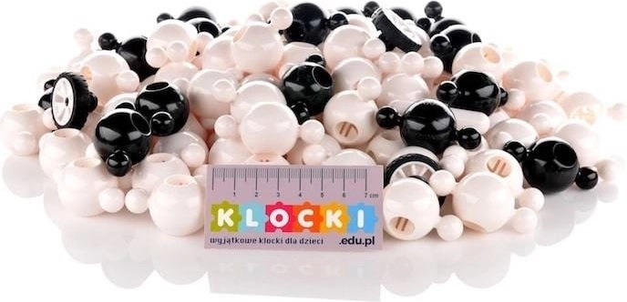 De afrundede former på de enkelte elementer er en spændende udfordring for små byggere. Konstruktioner bygget af disse klodser er robuste og giver mulighed for lang og interessant leg. Sættet indeholder kun klodser i to farver – sort og hvid – hvilket kan være en fantastisk idé som supplement til andre sæt, men også til god leg med farvesortering, optælling eller til at bygge modeller, hvis forlæg faktisk kun har sort og hvid som farver. Hvide hunde? Hvide grøntsager og frugter? Alt, hvad fantasien foreslår. Langvarig og kreativ underholdning er garanteret..