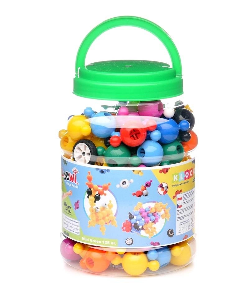 Sættet Green 125 stk. bringer en mangfoldig palet af farver og 4 A4-skabeloner, som inspirerer og guider trin for trin. Legen udvikler finmotorik, hånd–øje-koordination og kreativitet. Alt er opbevaret i en transparent glasformet boks med låg, så oprydningen går hurtigt, og delene altid er lige ved hånden.