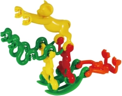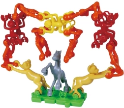Aber, elefanter, kameler og andre dele hækles nemt sammen og danner sjove kæder og tårne. Børn øver tålmodighed og konstruktionernes stabilitet.