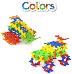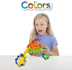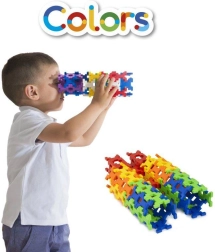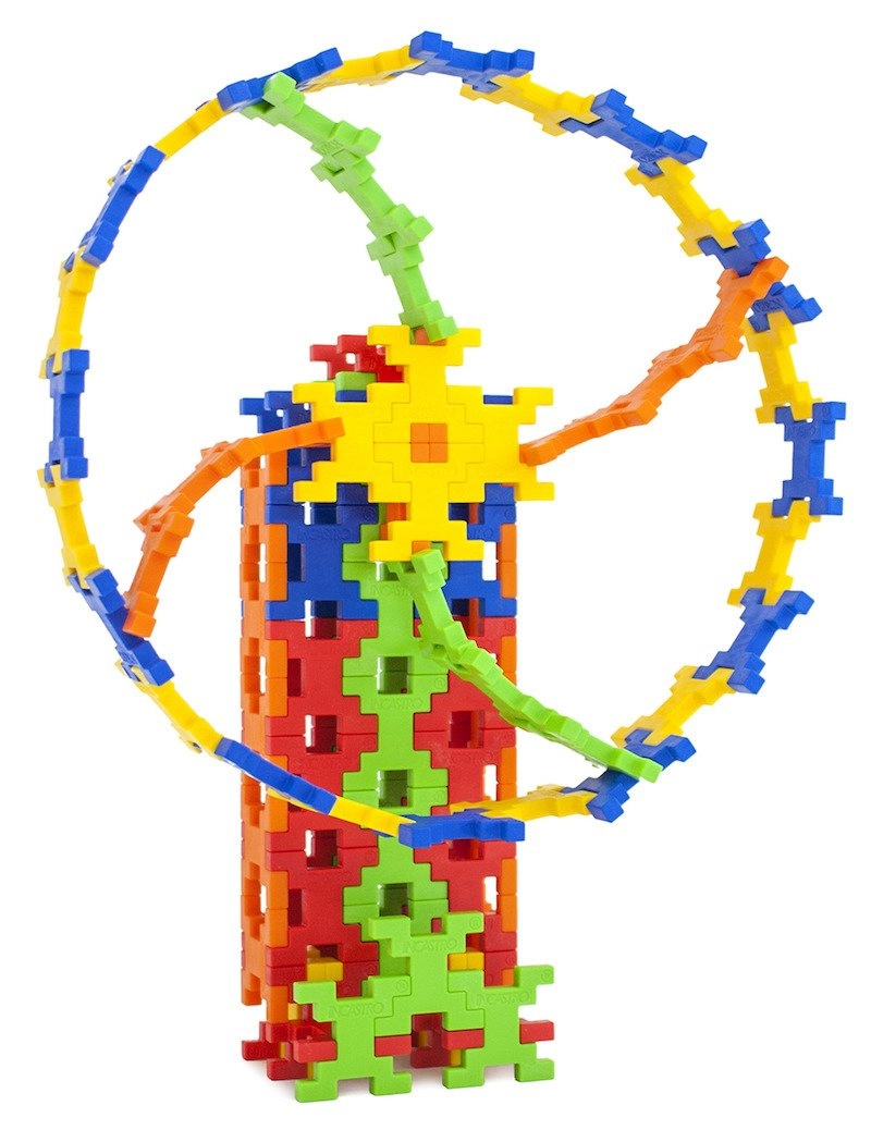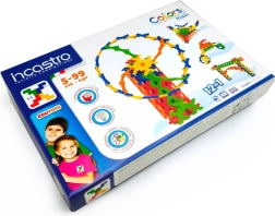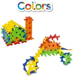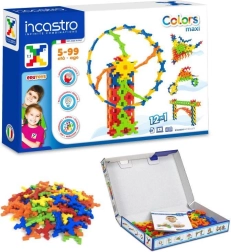 Byggesættet Incastro Colors maxi indeholder 100 solide plastdele i farverne rød, gul, grøn, blå og orange. Takket være de smart designede forbindelser bygger du let flade mosaikker og rumlige konstruktioner – fra tårne, broer og huse til køretøjer, robotter eller pynt til værelset. Delene kobles sikkert sammen, og konstruktionerne holder formen, hvilket gør både leg og transport lettere.