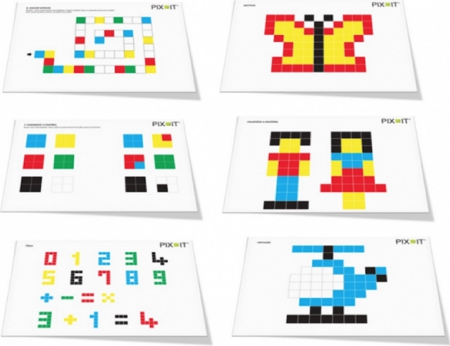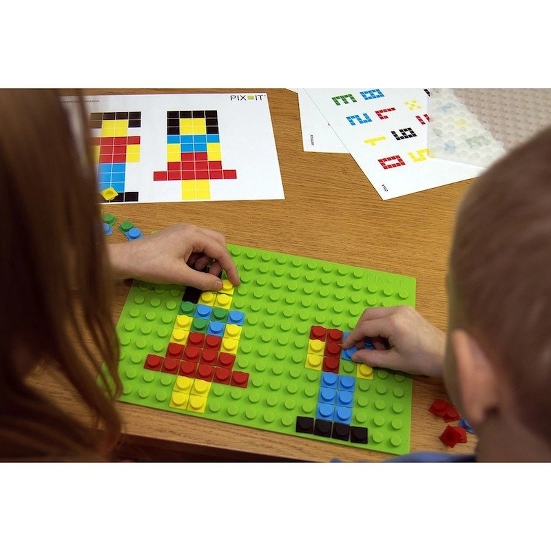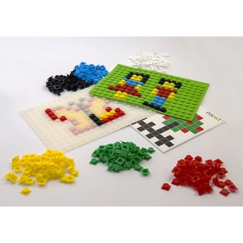 Opdag det smarte bygge-/mosaiksæt PIX-IT, som kombinerer leg og læring. Børn kan skabe deres egne billeder eller kopiere forlæg i hæftet. Den gennemsigtige underlag gør det muligt at lægge delene direkte på opgavekortet, så mindre børn lærer hurtigere, mens større børn kan klare mere komplekse mønstre og enkle principper for logik og kodning.