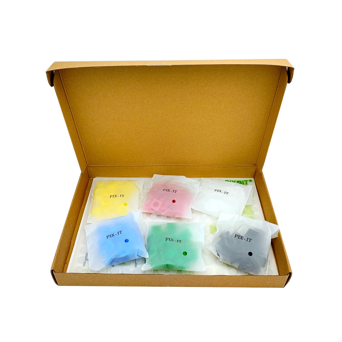 - 180 silikondele, 1 gennemsigtig silikoneunderlag 30 × 21 cm, hæfte med opgaver, kartonemballage