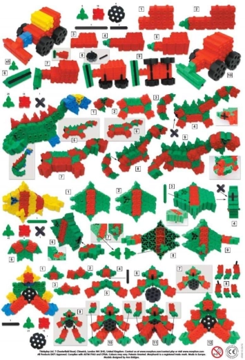 .Hver lille byggemester elsker kreativ leg med klodser. At bygge slotte, biler eller rumskibe er god tidsfordriv. De mange forskellige gravemaskiner, racerbiler eller dyr bygget af Morphun-klodser giver langvarig underholdning. Klodserne er nemme at sætte sammen, og samlingerne er holdbare. Bevægelseshjul giver yderligere muligheder for at lave løb eller bygge flerhjulede, bevægelige køretøjer. Sættet Creative Constructions er også unikt takket være den medfølgende ekstra vejledning i form af et hæfte. 32 farverige trin-for-trin-vejledninger hjælper med at stimulere børns fantasi og vise, hvor mange muligheder de plastiske Morphun-klodser tilbyder. Det er uden tvivl et af de bedste alsidige byggesæt. Det opfylder forventningerne selv hos de mest krævende små byggere. En sikker og funktionel boks med hank gør opbevaring let.