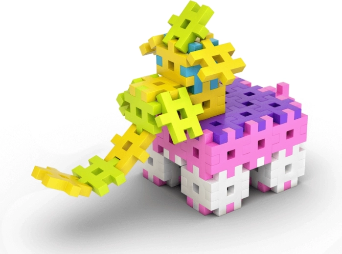 Byg dyr, blomster og figurer – de farverige dele stimulerer fantasi og rumlig forestillingsevne.