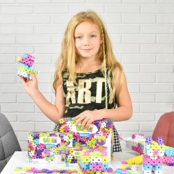 Byggesættet hører til blandt pædagogiske legetøj: det understøtter kreativitet, logisk tænkning og tålmodighed. Du kan bygge både 3D-modeller og flade mønstre som et puslespil. For endnu større stabilitet anbefaler vi at tilkøbe en basisplade.