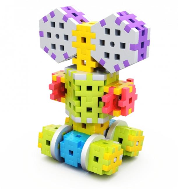 Når der bygges, træner børnene naturligt greb, øje-hånd-koordination og rumlig forestillingsevne. Materialet er uden BPA, behageligt fleksibelt og holdbart, og det opfylder CE- og EN-71-standarderne. Et praktisk idéhæfte hjælper med de første modeller og inspirerer til flere kreationer.