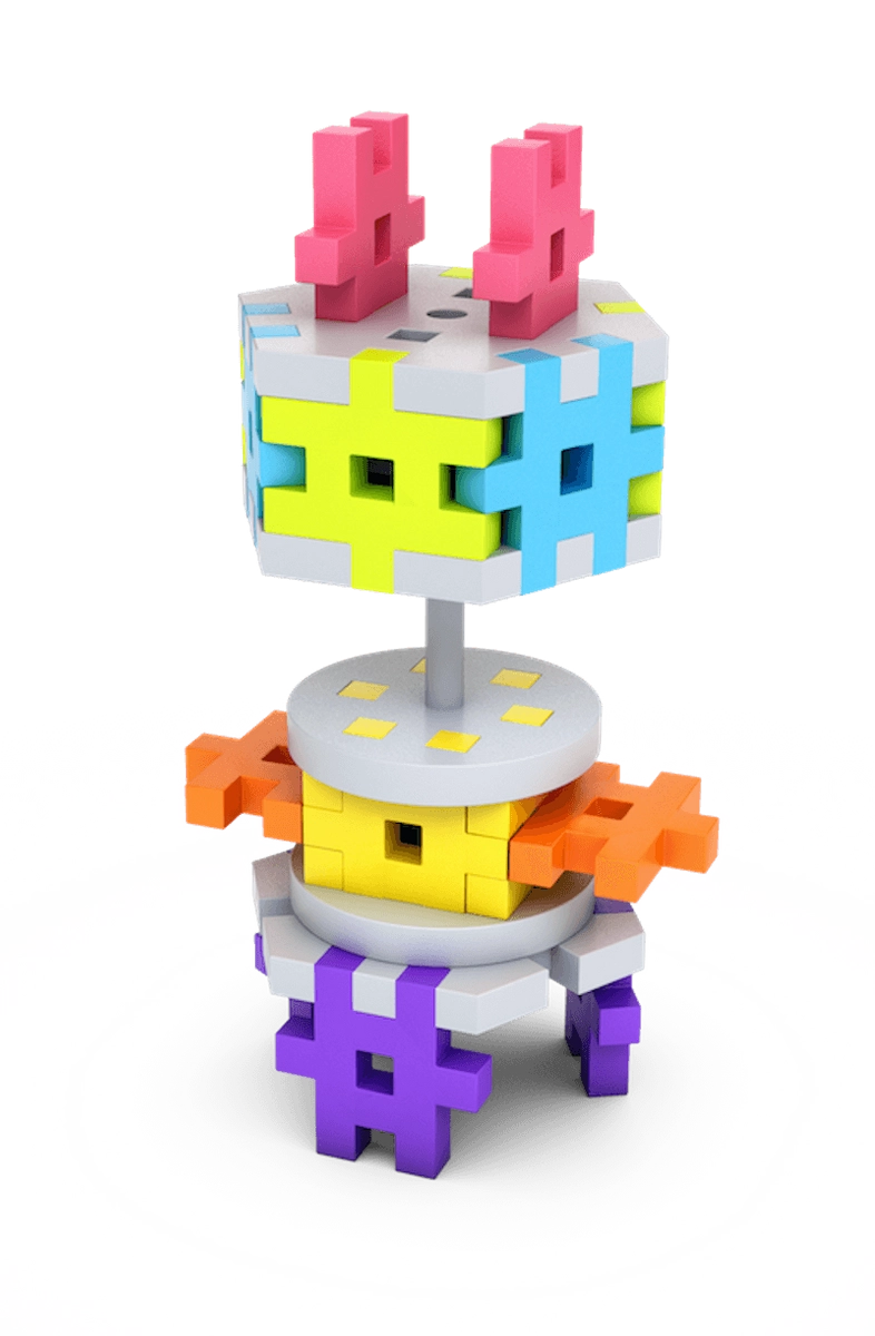 Kombinationen af grundlæggende “hash”-brikker og specialdele åbner en verden af fantasi for børn. Byg dyr, blomster og køretøjer og træn både finmotorik og forestillingsevne.