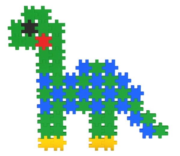 Ensartede, flade brikker gør det muligt at lægge mosaikker og rumlige figurer – fra dyr til køretøjer. Børn træner fantasi, planlægning og finmotorik.