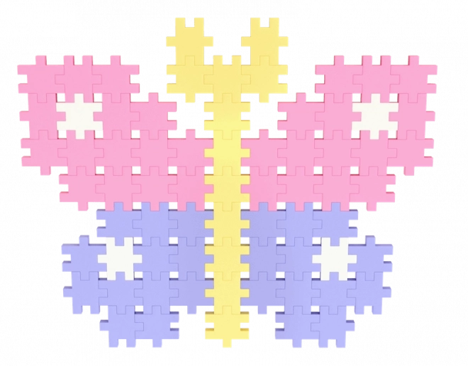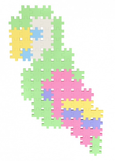 Det store sæt i blide farver giver rigeligt med dele til flade mosaikker og mindre 3D-skabelser – fra dyr til blomster og fantasifulde objekter.