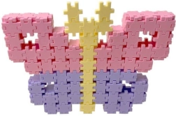 Den ensartede brikform klikker sikkert sammen og bliver siddende. Børn kan lave mosaikker og rumlige modeller – fra blomster og dyr til figurer og fantasiformer.